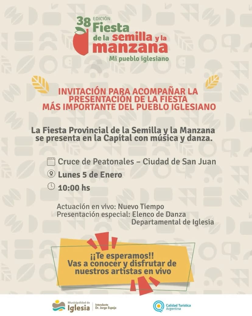 Vení a conocer y disfrutar de nuestros paisajes, clima, gastronomía y la agenda de actividades que te esperan en la 38ª edición de la Fiesta Provincial de la Semilla y la Manzana.