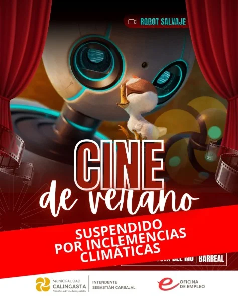 Debido al pronóstico de lluvias y condiciones climáticas desfavorables, se suspende el Cine de Verano previsto para hoy.