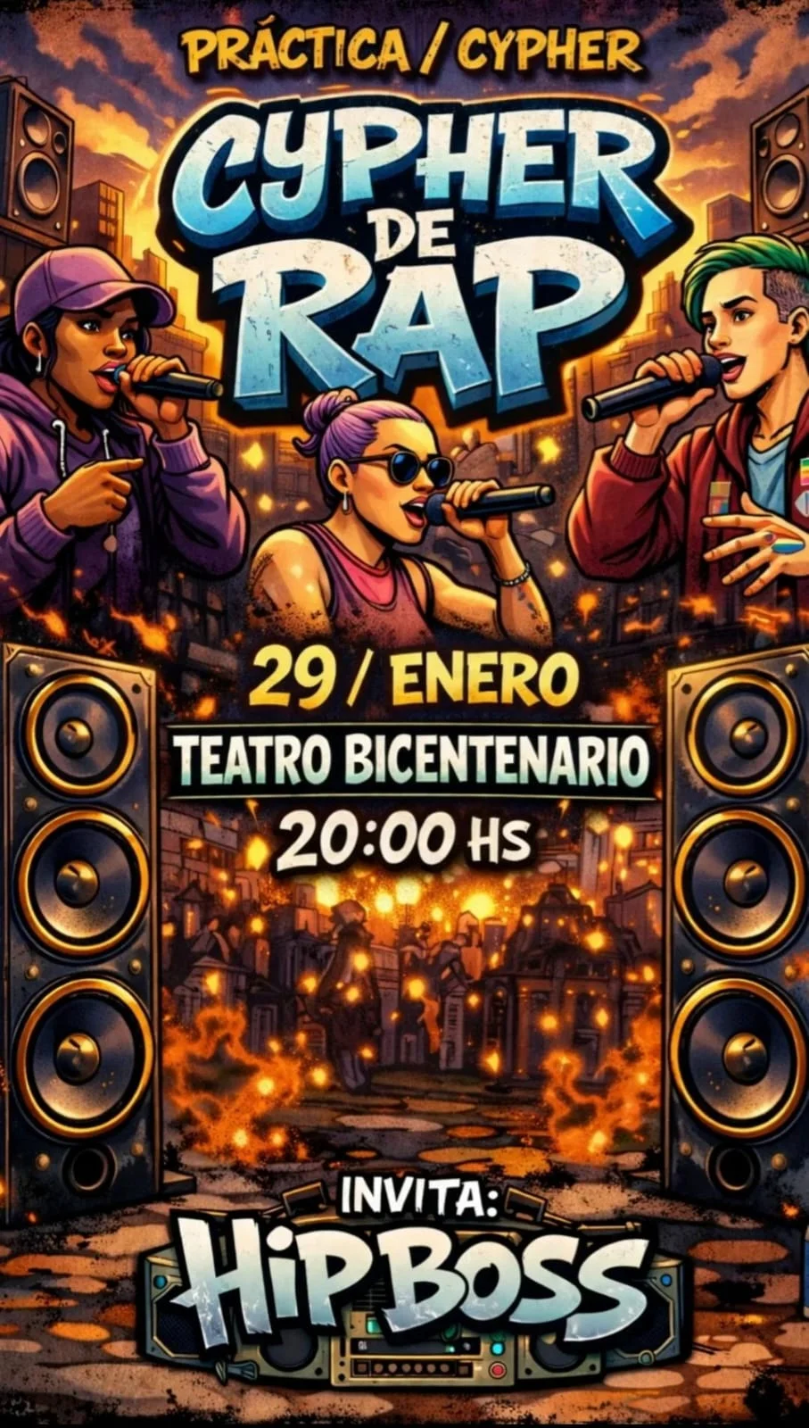 Este miércoles 29 de enero, la cultura hip hop toma el escenario del Teatro Bicentenario con una cypher abierta para rimas, flow y freestyle sin filtro.