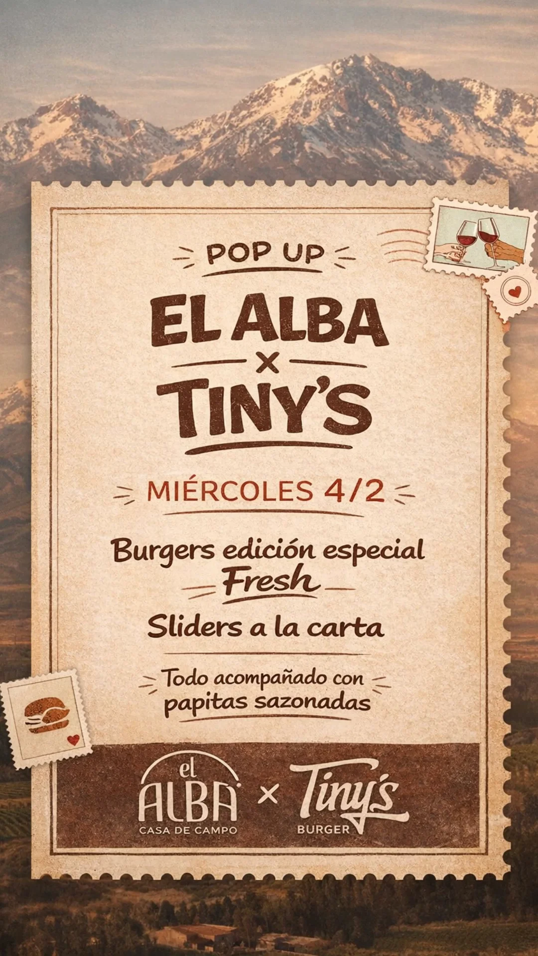 ¡Este miércoles se vive una noche de sabores únicos! 🏔️ Vení a disfrutar de una colaboración especial en el marco increíble de nuestra casa de campo. Preparate para probar lo mejor de las burgers con un toque "Fresh".