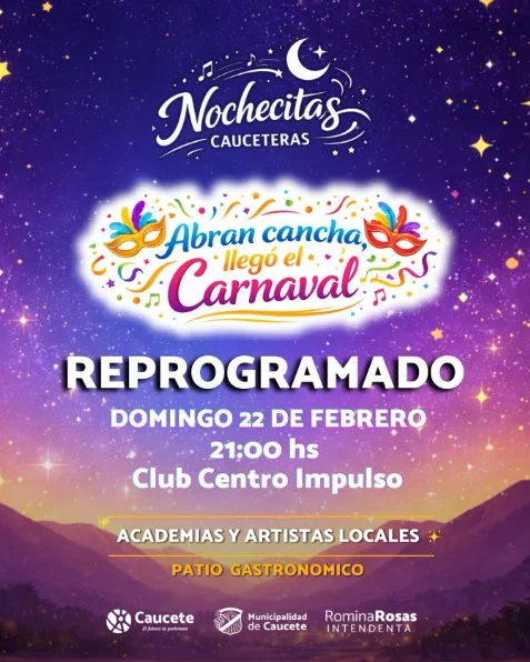 ¡Caucete se viste de fiesta! 🥳 Te esperamos para vivir una noche inolvidable en las tradicionales Nochecitas Cauceteras. Vení a disfrutar de la mejor música en vivo y un ambiente único para compartir con amigos y familia.