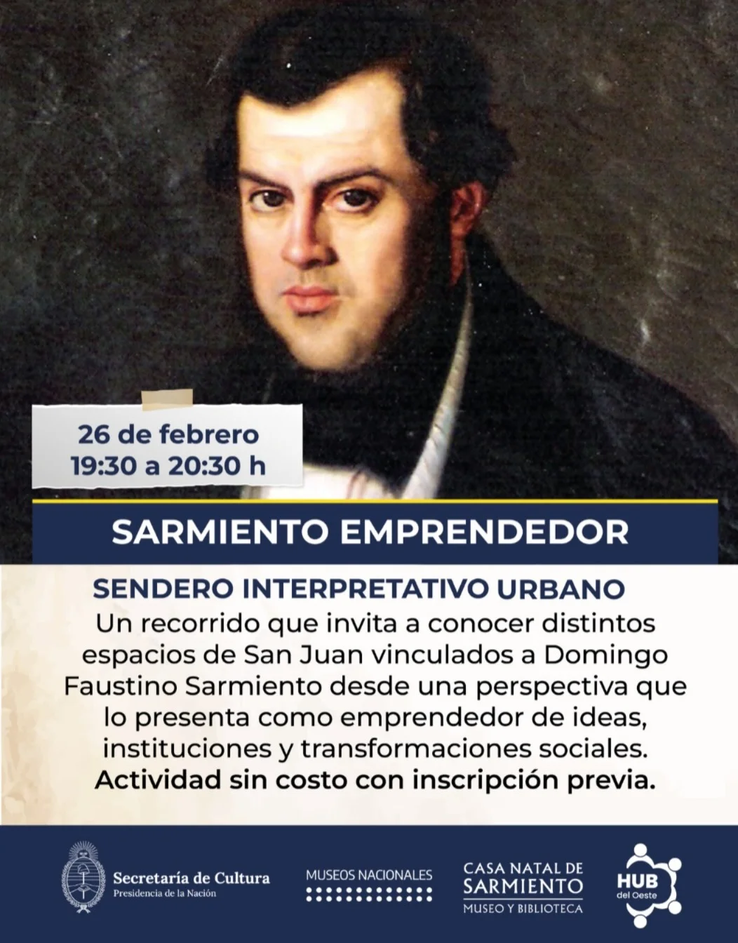 Una experiencia educativa y cultural que invita a recorrer la ciudad desde las ideas que transforman. El sendero propone conocer distintos espacios de San Juan vinculados a Domingo Faustino Sarmiento, pensándolo como impulsor de proyectos, instituciones y cambios sociales.