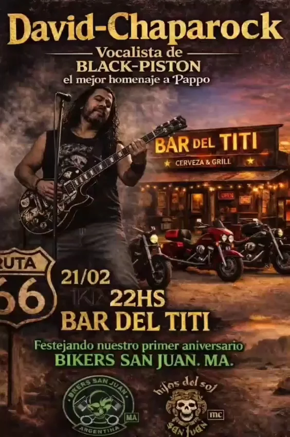 Preparate para una noche a puro motor y rock and roll en el Bar del Titi. Festejamos el primer aniversario de Bikers San Juan. MA. con un show imperdible.