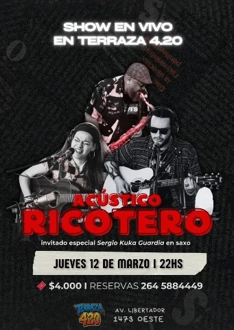 ¡Se viene una noche a puro sentimiento ricotero en la terraza! 🎸🎤 Disfrutá de un show acústico imperdible con los mejores clásicos.