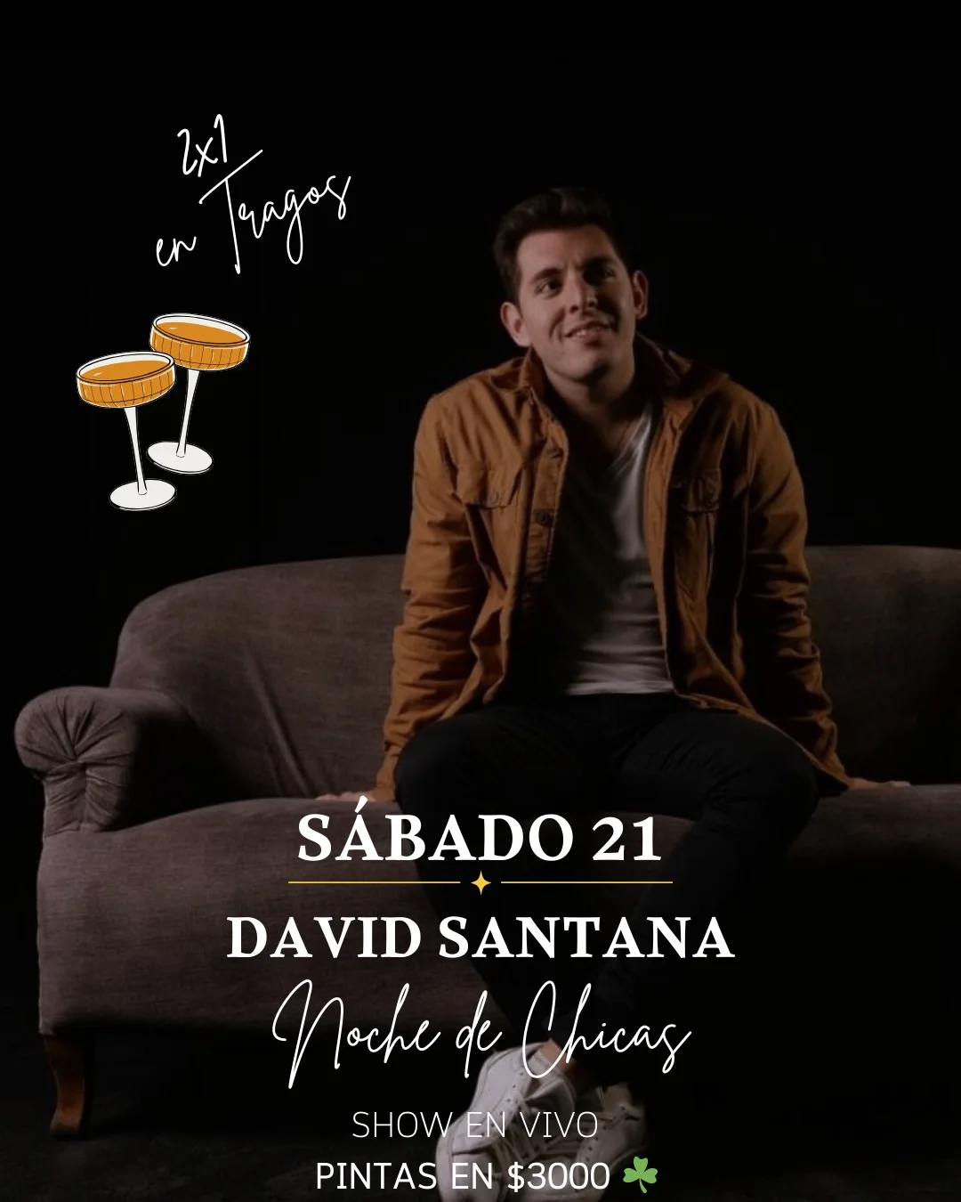 ¡Se viene una Noche de Chicas imperdible! 💃✨ Este sábado nos volvemos a encontrar para disfrutar de un tremendo show en vivo de David Santana.